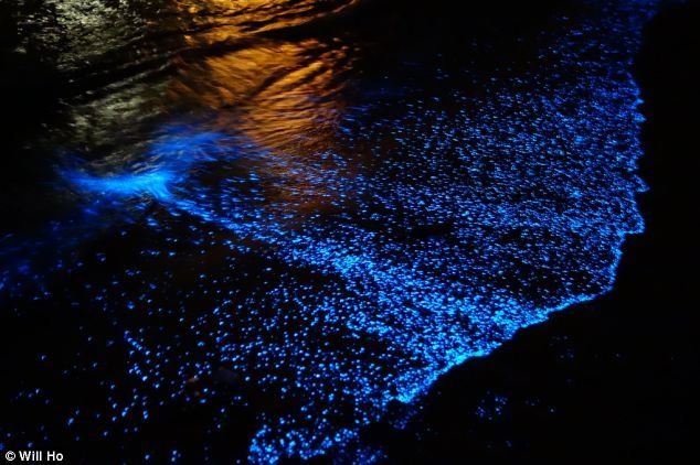 Discovery News dẫn lời nhà sinh vật biển Jorge Ribas cho biết, một vùng biển sẽ sáng rực nếu trong nước chứa nhiều sinh vật phù du có tên Lingulodinium polyedrum. Chúng phát sáng mạnh hơn khi bị sóng biển hay chân vịt tàu thủy tác động. Ảnh: Will Ho.