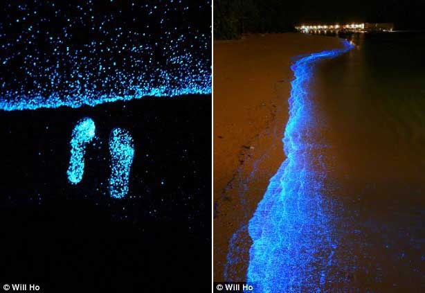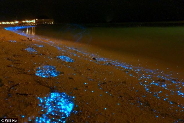 Một nhiếp ảnh gia đang trong kỳ nghỉ trăng mật tình cờ chụp được cảnh tượng sinh vật phù du phát quang dạt vào bờ biển.
