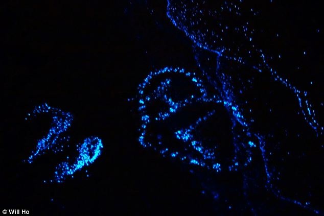 Nhiếp ảnh gia thử giẫm lên những sinh vật phù du nằm trên cát và nhận thấy chúng phát sáng mạnh hơn. Chúng làm nổi bật từng bước chân trên bãi biển. Ảnh: Will Ho.