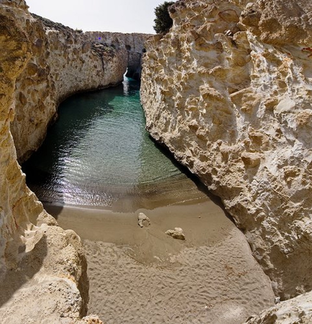 | Đến vùng đảo Milos ở Hy Lạp người ta có thể tìm thấy cảnh quan thiên nhiên thôn dã của bãi biển Papafragas, là một trong những địa điểm ấn tượng nhất trên đảo Milos. Bãi biển Papagragas nằm dưới đáy của một hang động. |