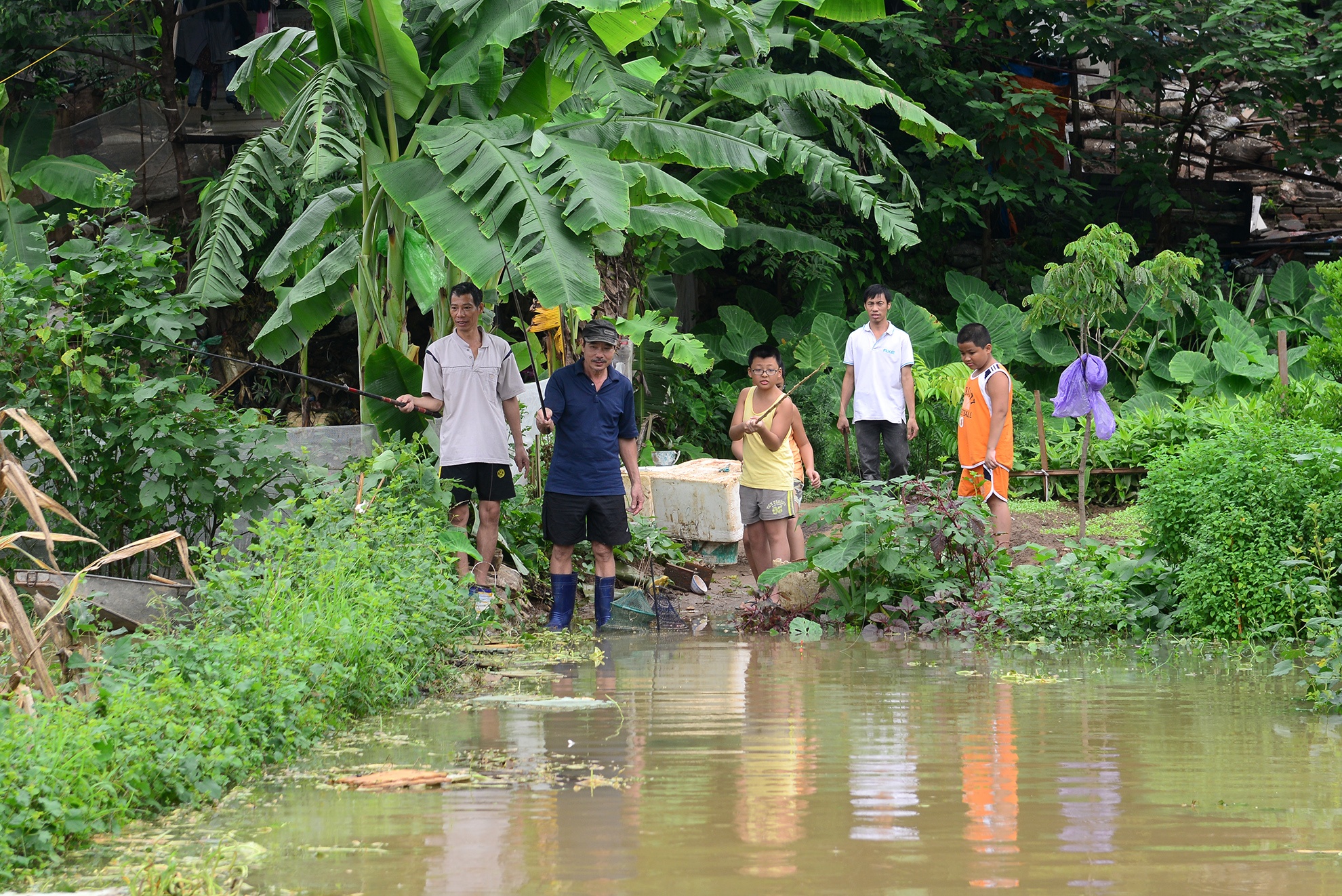 | Nước lên, cá về nhiều đã thu hút nhiều người tìm đến thả câu ở ven bờ và bên trong các ruộng vườn bị ngập nước. |