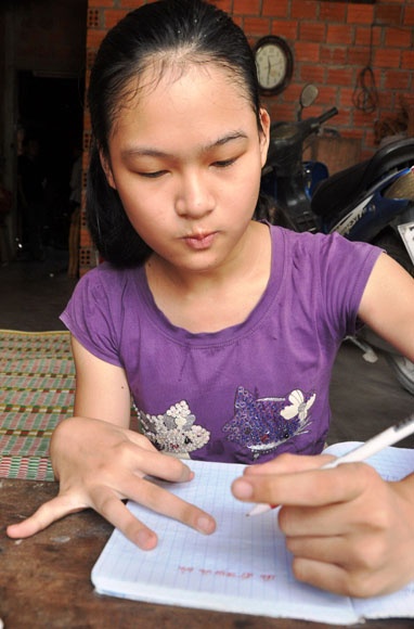 Tuyền thổ lộ: “Thật ra khi mới lên học lớp 6 em rất ngại vì em nói rất khó nghe và chậm, sợ các bạn cười. Sau thấy mọi người quan tâm giúp đỡ em mới tự tin, hăng hái phát biểu hoặc trình bày ý kiến trước lớp”. Cô học trò tội nghiệp cho biết rất sợ đau ốm mà phải nghỉ học nửa chừng thì tiếc lắm.