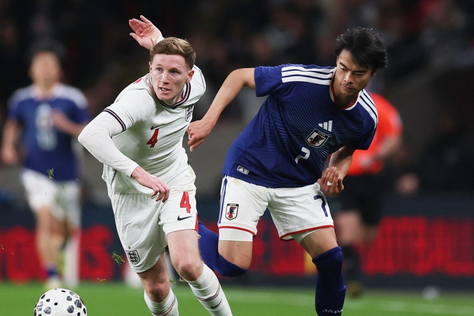 | 3 cầu thủ Nhật Bản dễ dàng xuyên thủng hàng thủ tuyển Anh. |