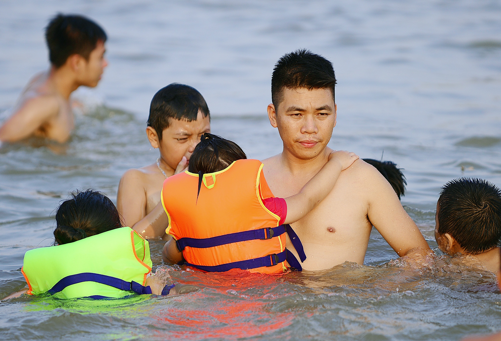 Ngoài ra còn có các gia đình cho trẻ em đi bơi mỗi dịp cuối tuần.