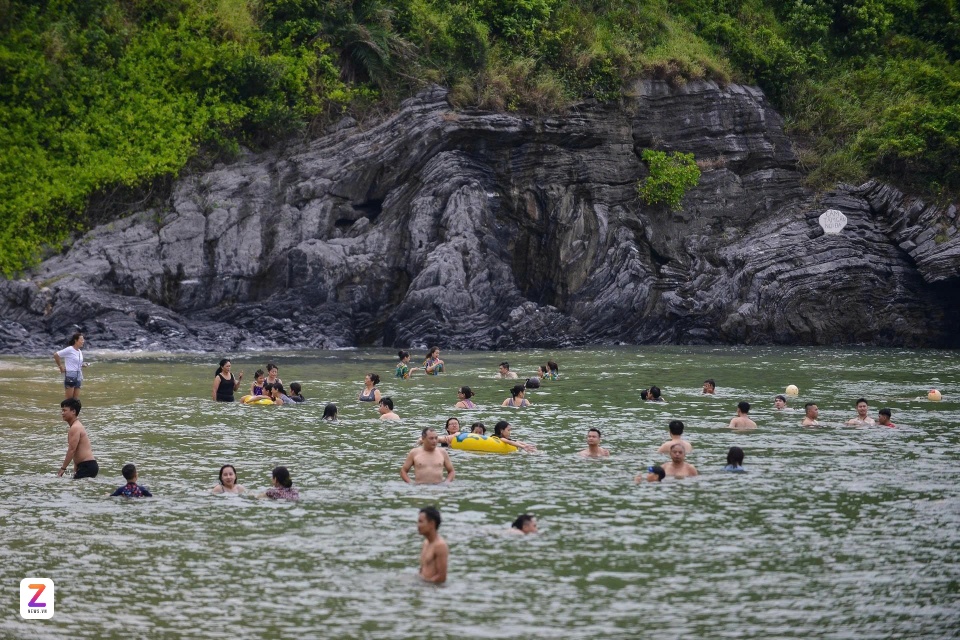 | Người dân và du khách tắm biển, nhảy sóng tại bãi tắm Cát Cò 3 (Hải Phòng), năm 2019. Ảnh: Việt Hùng. |