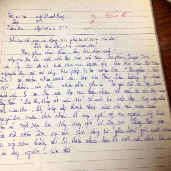 | Bức ảnh chụp lại bài kiểm tra môn Ngữ văn năm học lớp 9 của Sơn Tùng M-TP đang thu hút sự quan tâm của cộng đồng mạng. Ảnh: Khánh Hòa. |