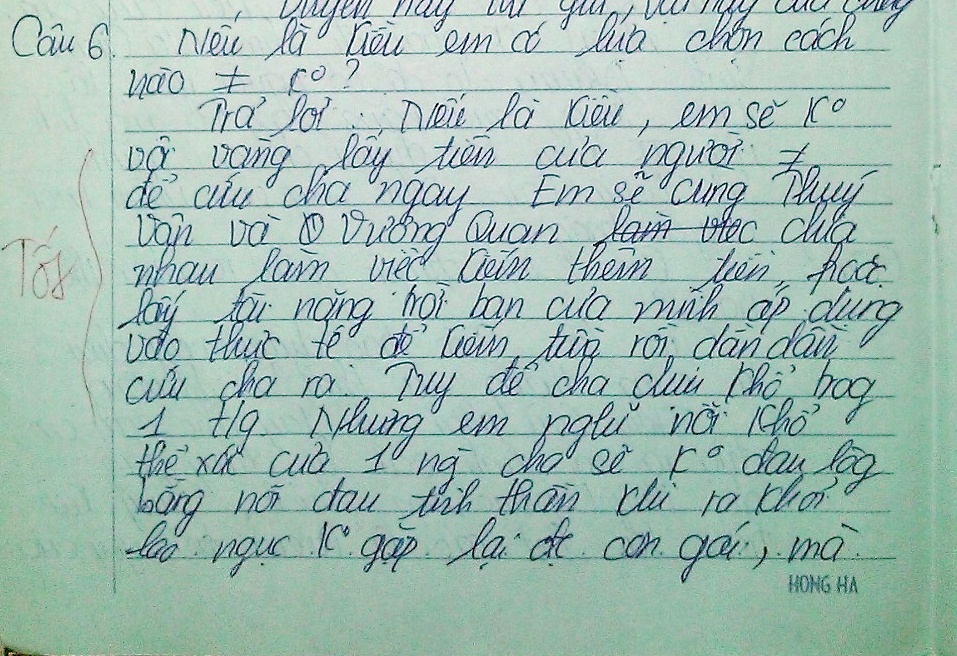 Câu trả lời của Yến đã được thầy Nguyễn Phi Hùng (giáo viên ra đề) nhận xét tốt và dành điểm 9 cho nữ sinh này.