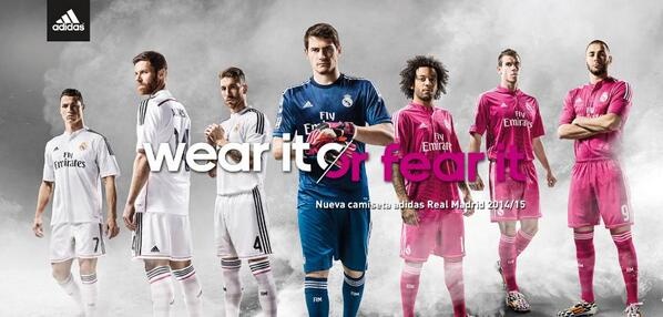 Mặc dù các cổ động viên đang hướng về World Cup 2014 nhưng Real Madrid vẫn quyết định cùng Adidas tung ra áo đấu cho mùa giải mới 2014/2015. Bộ trang phục chính không có nhiều thay đổi với gam màu trắng truyền thống. Tuy nhiên, mẫu áo đấu trên sân khách gây bất ngờ lớn khi sử dụng gam màu hồng ấn tượng làm chủ đạo. Bale, Benzema và Marcelo là những cầu thủ đầu tiên được diện bộ cánh mới này. |