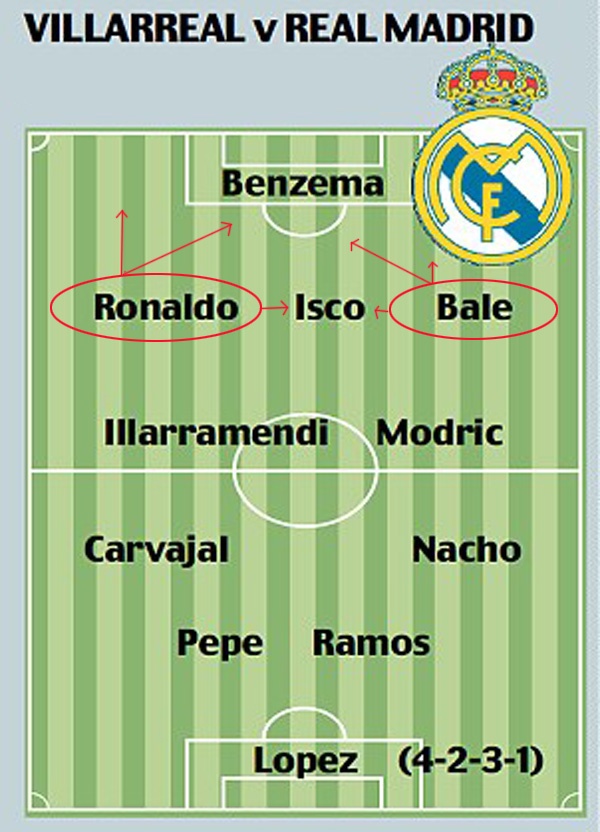 | Sơ đồ chiến thuật 4-2-3-1 của Real. |