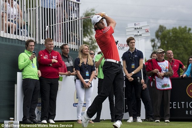 | Tiền vệ Gareth Bale của Real Madrid tham dự giải golf diễn ra trong hai ngày cùng một số ngôi sao truyền hình nổi tiếng như Rob Brydon, Philip Glenister và Gethin Jones ở khu nghỉ dưỡng Celtic Manor, Newport, Vương quốc Anh. |