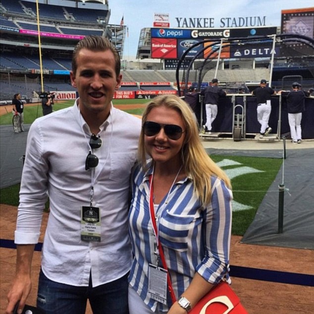 | Tiền đạo Harry Kane của Tottenham và bạn gái Kate Gooders dự khán trận đấu bóng chày trên sân Yankee ở New York, Mỹ. |