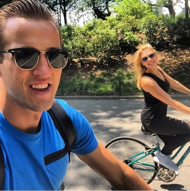 | Chân sút số 1 của Spurs mùa trước khoe ảnh đi dạo cùng bạn gái bằng xe đạp trong công viên Trung tâm tại xứ sở cờ hoa. |