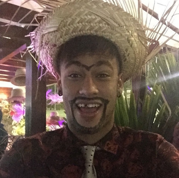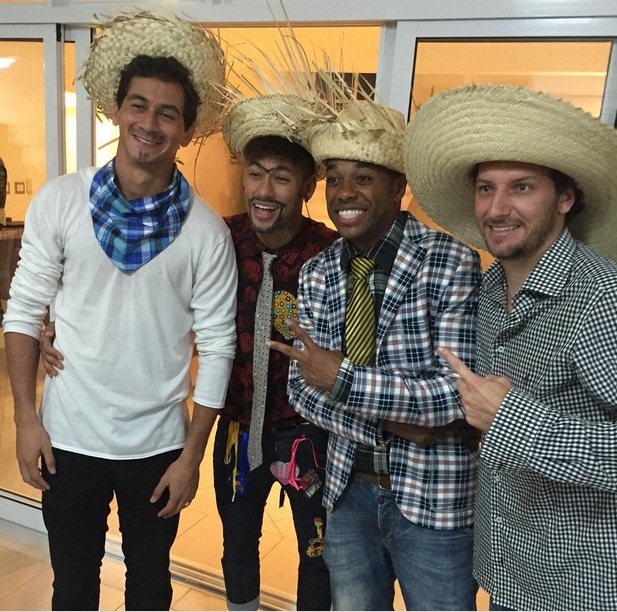 | Chân sút 23 tuổi vui đùa cùng đàn anh Robinho ở đội tuyển Brazil và một số người bạn trong kỳ nghỉ. |