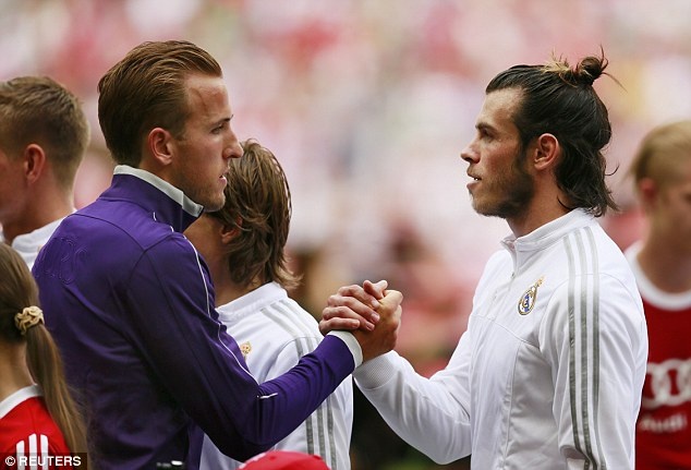 | Gareth Bale (phải) gặp lại đội bóng cũ Tottenham ở bán kết Audi Cup 2015. Anh bắt tay Harry Kane - cầu thủ được mệnh danh Bale "mới" ở Tottenham. |