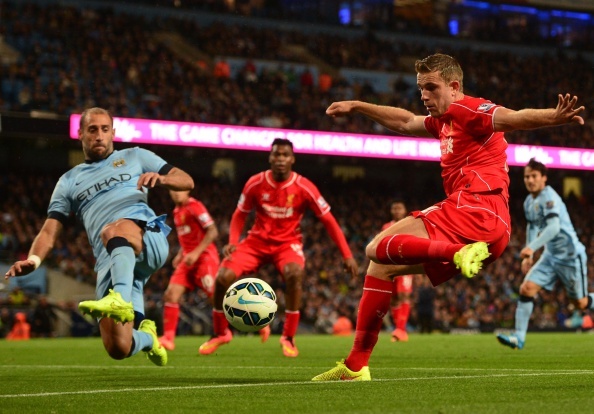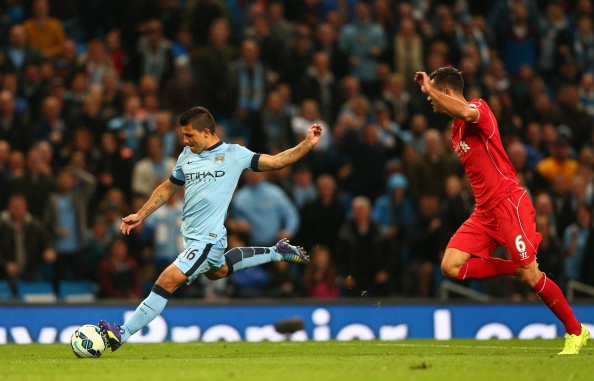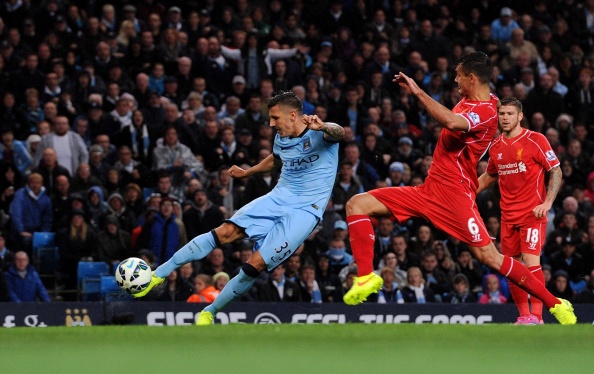 | Tuy nhiên, đội khách lại là những người để thủng lưới trước. Tận dụng pha phá bóng thiếu dứt khoát của tân binh Alberto Moreno (Liverpool), Stevan Jovetic cướp bóng rồi tung ra cú dứt điểm quyết đoán mang về bàn thắng mở tỷ số cho Man City ở phút 41. |