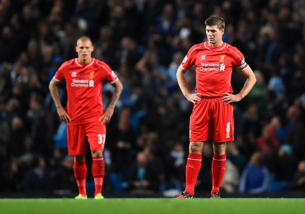 | Nỗi thất vọng của đội trưởng Gerrard và trung vệ Skrtel sau khi đội nhà phải nhận bàn thua thứ 2.