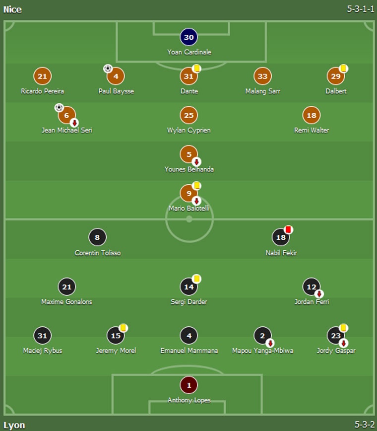 Tiền đạo Balotelli thực hiện không thành công quả penalty ở phút 81, nhưng Nice vẫn giành chiến thắng 2-0 trong trận tiếp đón Lyon thuộc vòng 9 Ligue 1 diễn ra sáng 15/10.
