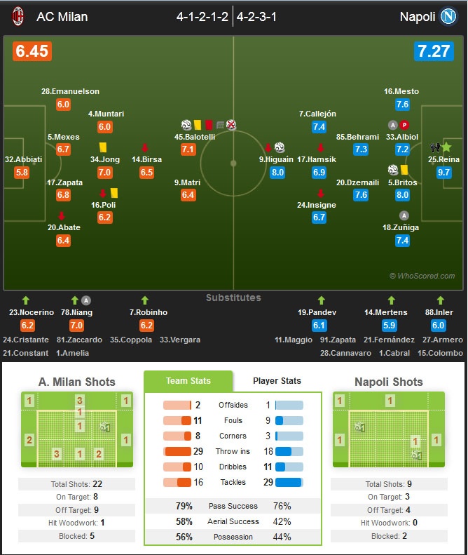 Trong cuộc đấu được mong chờ nhất vòng 4 Serie A, các cầu thủ AC Milan đã chịu thất bại chung cuộc 1-2 sau các pha lập công của M. Britos và G. Higuain bên phía Napoli.