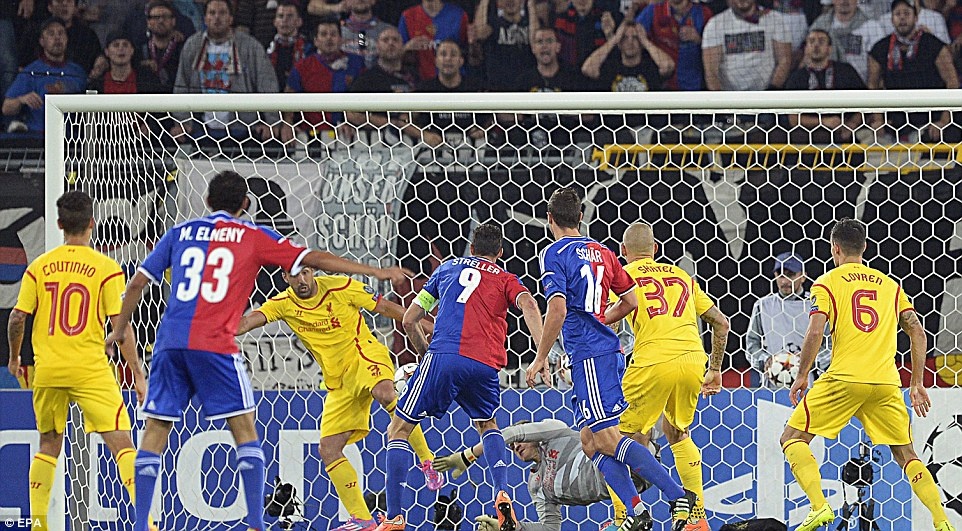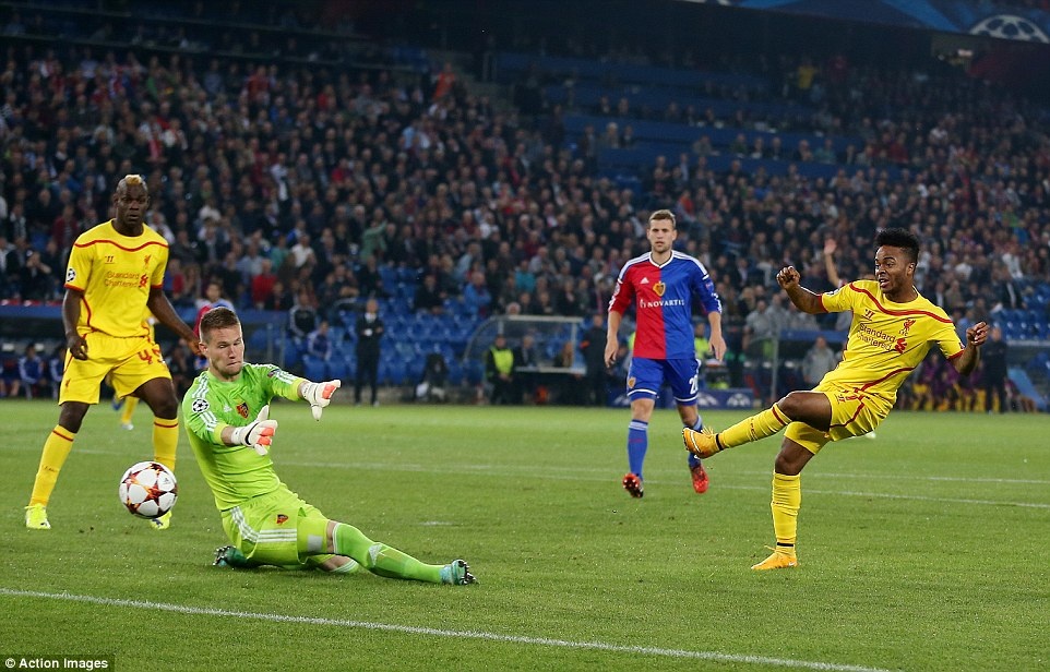 | Ngay ở phút thứ 2, Sterling đã làm tung lưới Basel sau đường chuyền của Gerrard. Tuy nhiên, trọng tài không công nhận bàn thắng vì cho rằng tài năng trẻ người Anh rơi vào thế việt vị trước khi dứt điểm. |