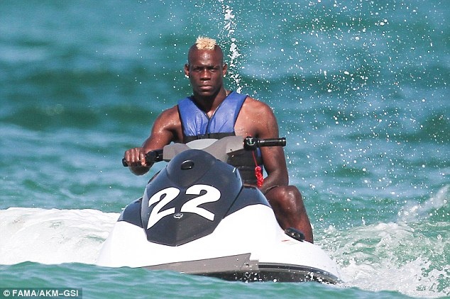| "Siêu quậy" Balotelli tự tin thử cảm giác mạnh với trò chơi cưỡi sóng. |