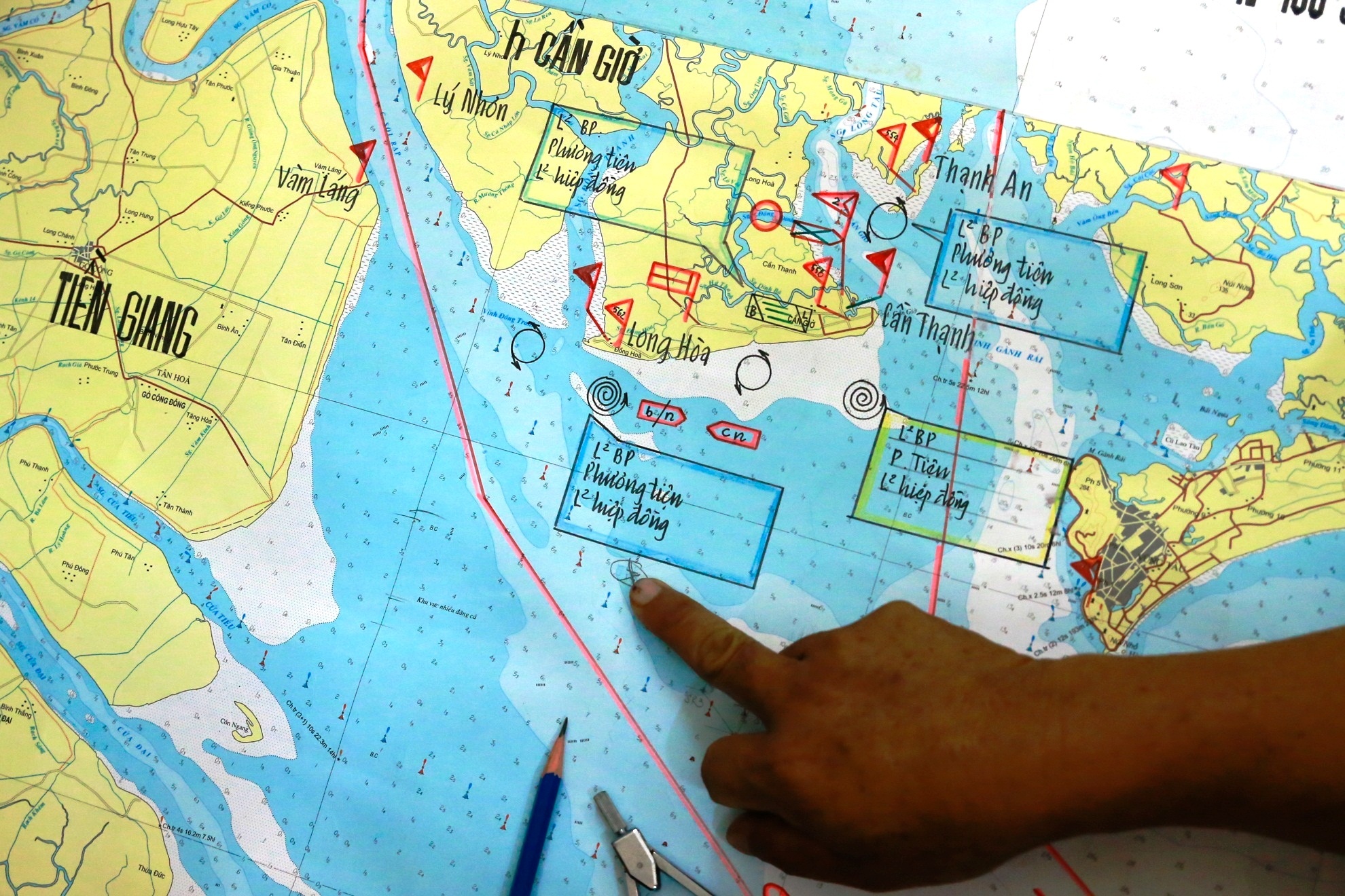 Hiện 5 thuyền viên còn lại mất tích tại khu vực phao số 5 trên sông Soài Rạp, cách bờ biển huyện Cần Giờ khoảng 7 hải lý.