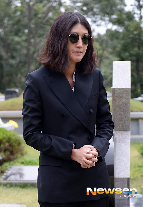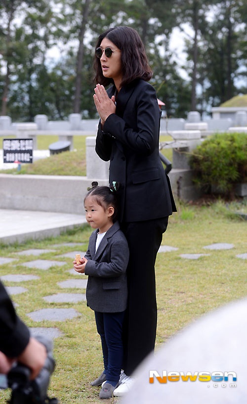 Hong Jin Kyung dẫn con gái tới viếng mộ bạn thân. |