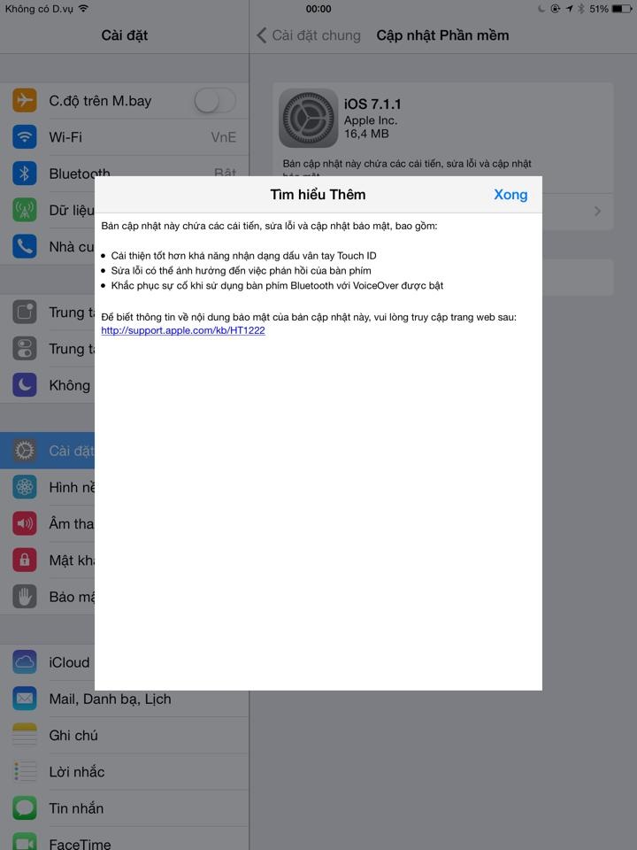 | Thông báo cập nhật lên iOS 7.1.1 trên iPad. |