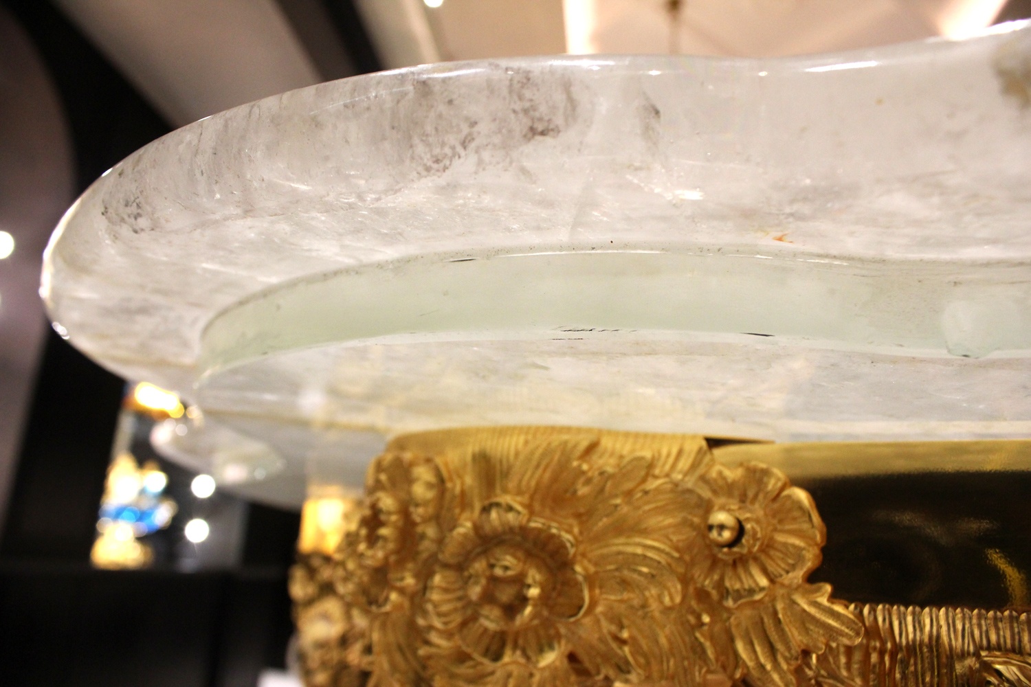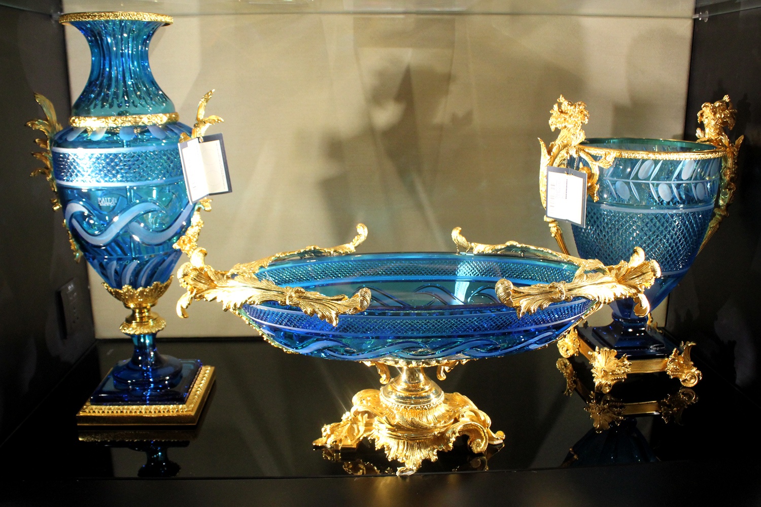 | Ngoài 2 chiếc bàn nói trên, cửa hàng cũng chào bán nhiều đồ nội thất pha lê có giá trị cao. Trong ảnh là chiếc cúp pha lê khảm vàng có giá 310 triệu đồng. |