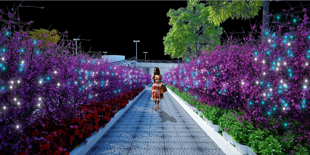| Tại khu vực đầu cầu Rồng, công ty DHC cũng tạo điểm nhấn là các hàng hoa đào Nhật Tân. Bên cạnh đó, ở một số điểm, đơn vị trồng thêm các cây xanh xen kẽ để tạo nên sự hài hòa màu sắc, không gian. |