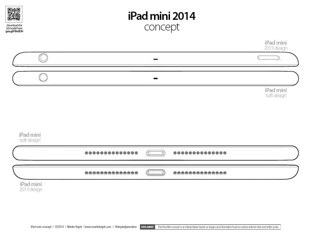 Martin Hajek là một trong những nhà thiết kế thường xuyên vẽ những bản dựng về sản phẩm Apple. Lần này, ông quyết định phác họa chân dung mẫu iPad mini 2014 với thiết kế cạnh bên bo tròn hoàn toàn. Trong hình ảnh trên, chúng ta có thể thấy điểm khác biệt về thiết kế của bản concept này so với iPad mini hiện tại.