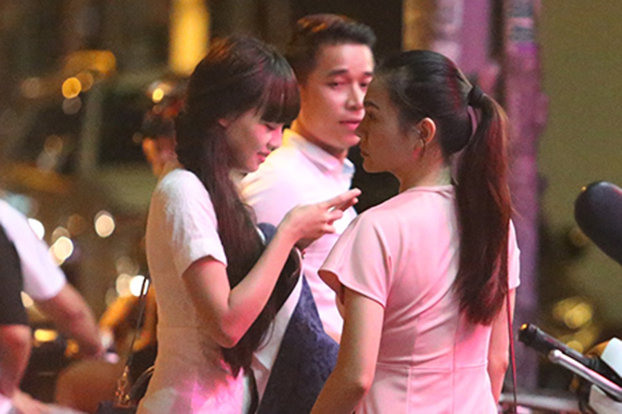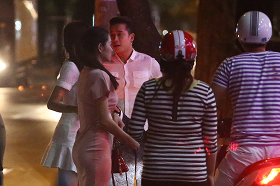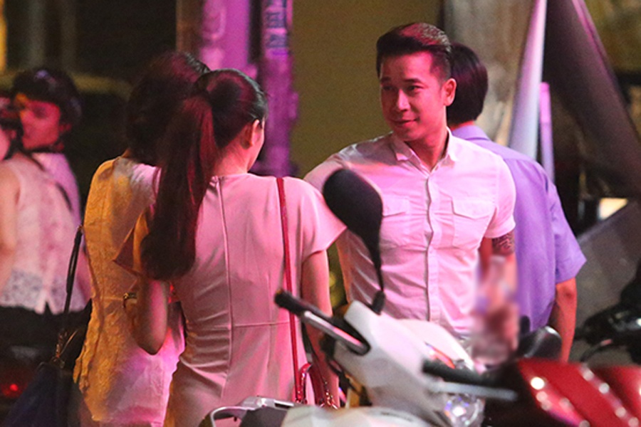 | Lê Hoàng tỏ ra khá tình cảm với bạn gái trước mặt người hâm mộ cũng như giới truyền thông. Khi xuống xe, anh chủ động nắm tay dẫn Việt Huê vào khu vực hậu trường. |
