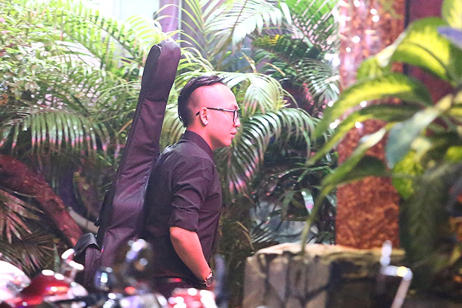 | Ít lâu sau đó, nhạc sĩ Nguyễn Hoàng Duy cũng có mặt. Anh đảm nhận vai trò đệm đàn cho The Men trong minishow. |