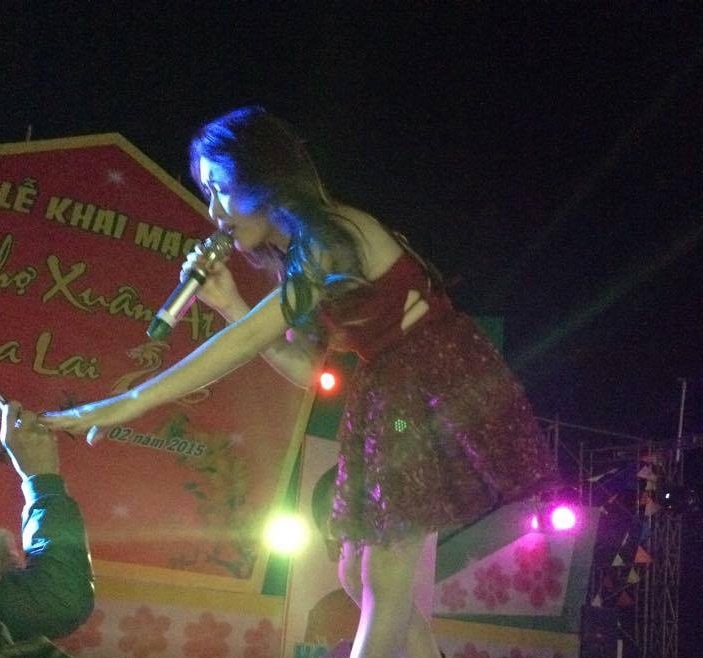 | Hòa Minzy trong đêm biểu diễn tối ngày 4/2 tại Gia Lai. Ảnh: Dung Dung. |