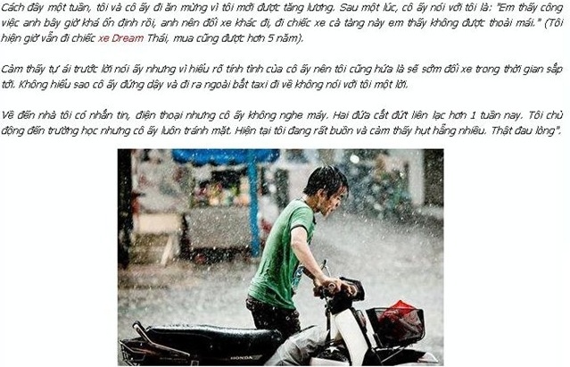 | Tâm sự của chàng trai bị người yêu dọa bỏ vì đi xe Dream được lan truyền trên mạng xã hội. |