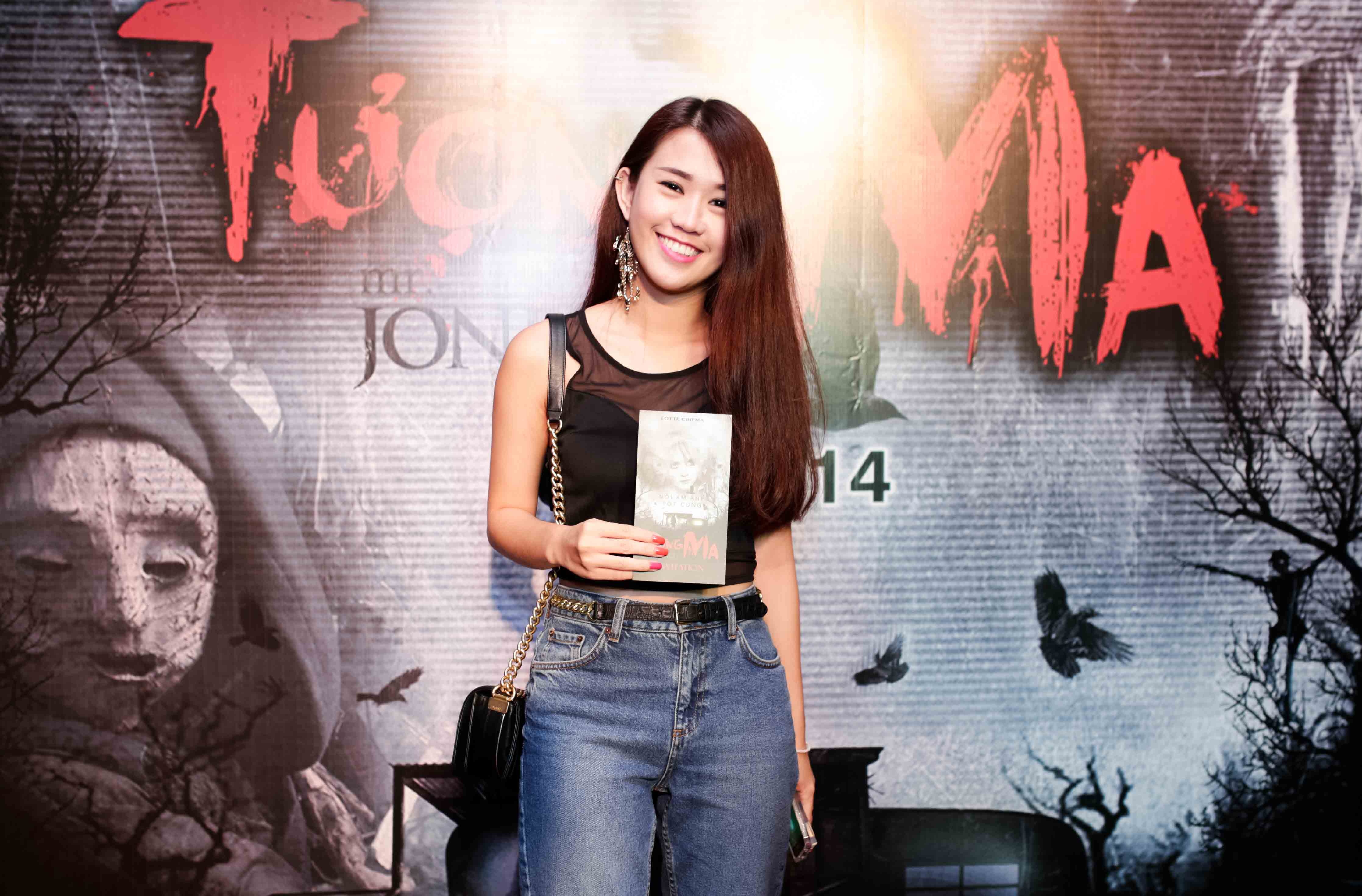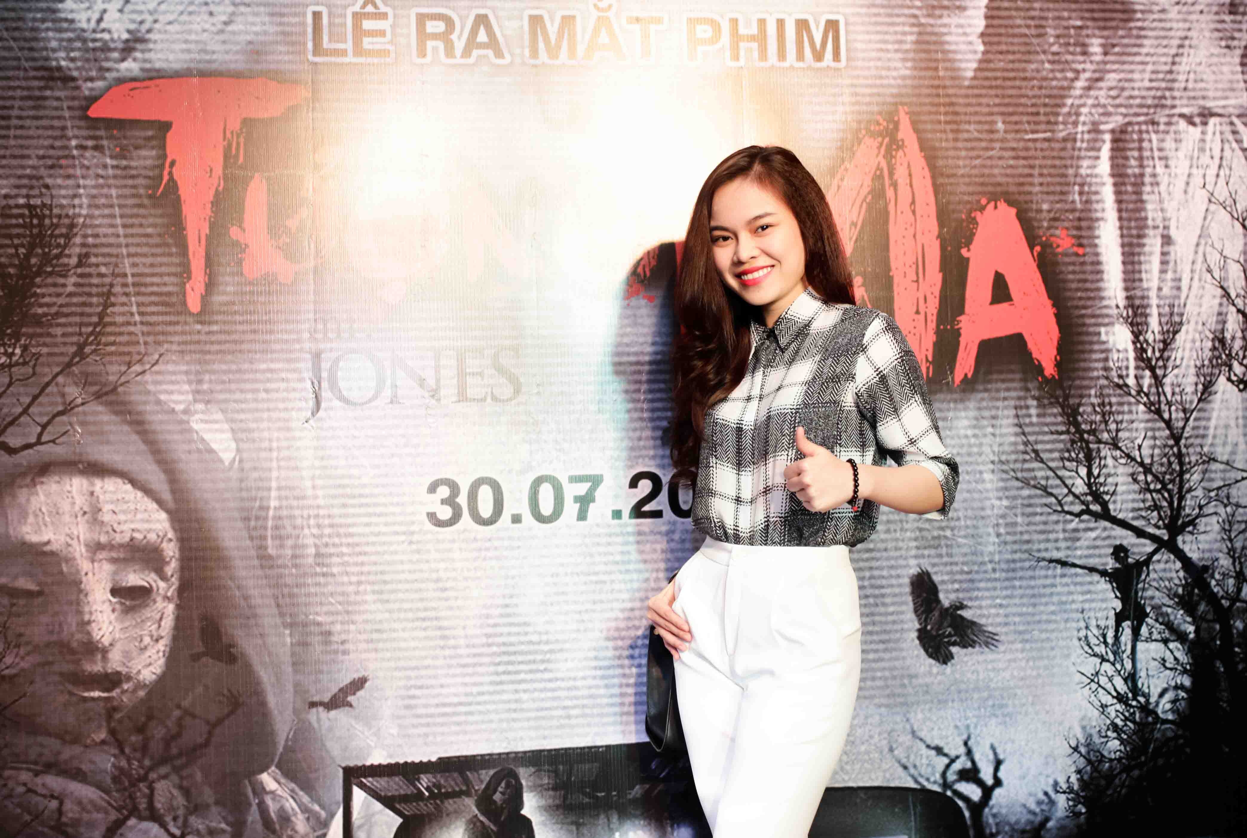 Mai Hồ khéo léo kết hợp quần shorts với áo thun dài tay khi tới dự buổi ra mắt phim "Tượng Ma" ở TP.HCM chiều 30/7.