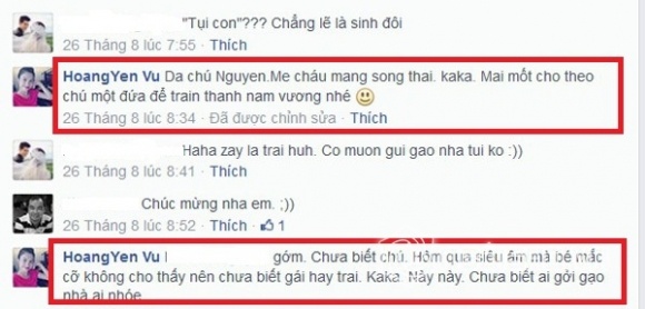Những chia sẻ xúc động của Hoàng Yến về hai con sắp chào đời thu hút sự quan tâm của bạn bè trên trang cá nhân. Rất nhiều người vào chúc mừng người đẹp sớm có tin vui sau 5 tháng kết hôn.