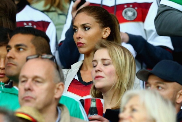 | Không giông hai nàng WAGs trên, Ann-Kathrin Broemmel rất chú tâm xem bạn trai Mario Goetze thi đấu. |
