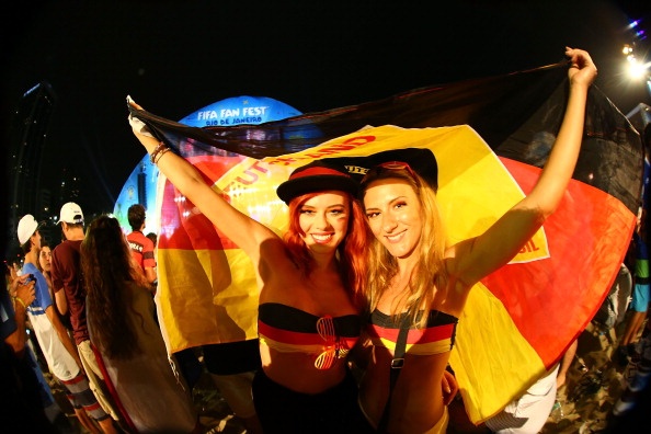 | Hai nàng WAGs của tuyển Đức nhờ một CĐV chụp ảnh kỷ niệm. |
