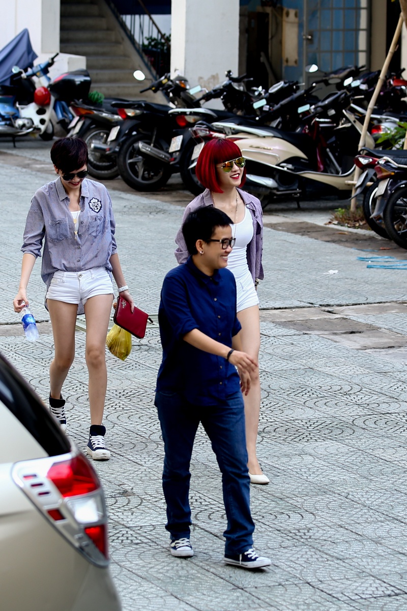 Ba thầy trò vừa đi vừa cười nói rôm rả. Không đảm nhận bất cứ vị trí nào trong chương trình nhưng hai chị em Trang và Trâm thường xuyên đi xem The Voice Kids để ủng hộ Phương Uyên cũng như các thí sinh nhí.