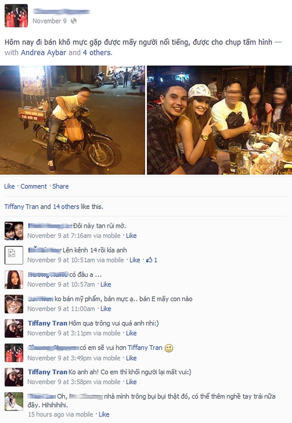 Trước đó, dưới một tấm hình ghi lại cuộc vui của Baggio - Andrea và bạn bè, một người bạn nói với Quỳnh Trâm rằng: "Có em sẽ vui hơn". Cô đáp lại một cách thẳng thắn: "Không anh ạ! Có em thì khối người lại mất vui". Những trao đổi qua lại này khiến không ít người suy đoán cô nha sĩ 9X không vui vì Baggio đi chơi chung với Andrea. Và đây có thể là nguyên do khiến hot boy Sài thành phải lên tiếng xin lỗi rồi tặng hoa, rủ bạn gái đi xem phim để an ủi.
