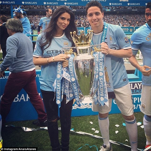 | Bạn gái đến ăn mừng cùng Nasri trong ngày Man City đăng quang vô địch. |