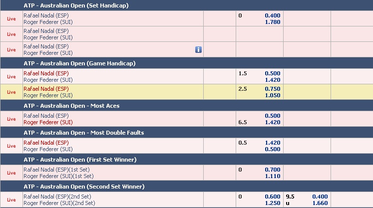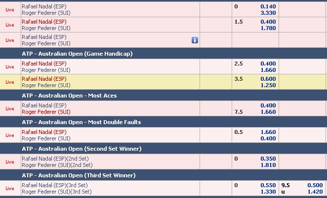 Tỷ lệ cược ở set 1 trận bán kết trận Federer - Nadal.