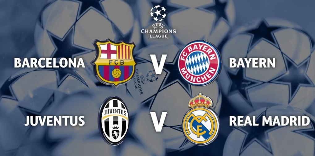 Bốn đội bóng ưu tú nhất vào bán kết Champions League mùa này gồm nhà đương kim vô địch Real, gã khổng lồ xứ Catalan Barca, đội bóng số một của Serie A Juventus và nhà vô địch Bundesliga Bayern.
