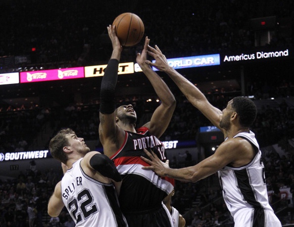 | Phát biểu sau trận đấu, LaMarcus Aldridge (12) tỏ vẻ tiếc nuối: "Chúng tôi đã bỏ lỡ quá nhiều cơ hội. Tôi thật sự đã không có được phong độ tốt tối nay khi bỏ lỡ 2 cú slam dunk và 4 hoặc 5 lần lên rổ. Nếu những tình huống đó thành công, kết cục trận đấu có thế đã khác". Ở trận này, ngôi sao sáng nhất bên phía Blazers đã bị Tiago Splitter (22) theo kèm quá sát. |