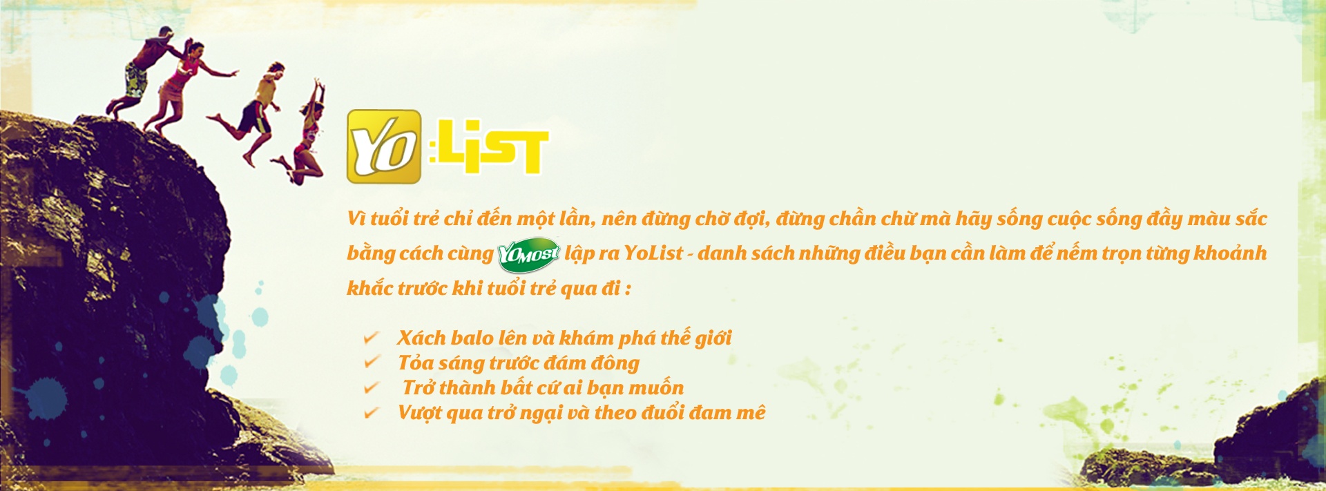 Nếu bạn muốn cuộc sống đầy sắc màu, trước tiên, hãy vượt qua những nỗi sợ vô hình, sau đó hãy lập cho bản thân một YoList - danh sách những việc cần làm để tận hưởng tuổi trẻ. Có YoList, bạn sẽ biết được cụ thể những việc gì mình cần tập trung nỗ lực thực hiện và bạn sẽ sử dụng sức lực và thời gian theo cách hiệu quả hơn, niềm khát khao của bạn sẽ được thực hiện một cách trọn vẹn hơn.