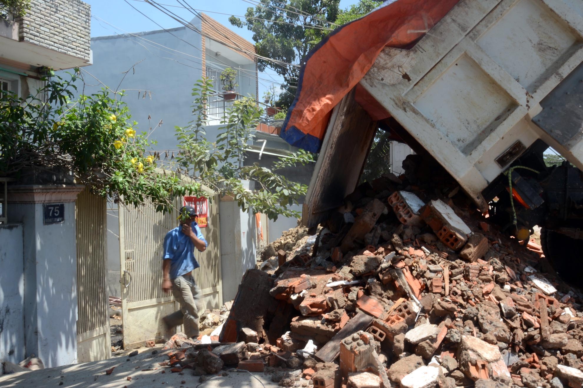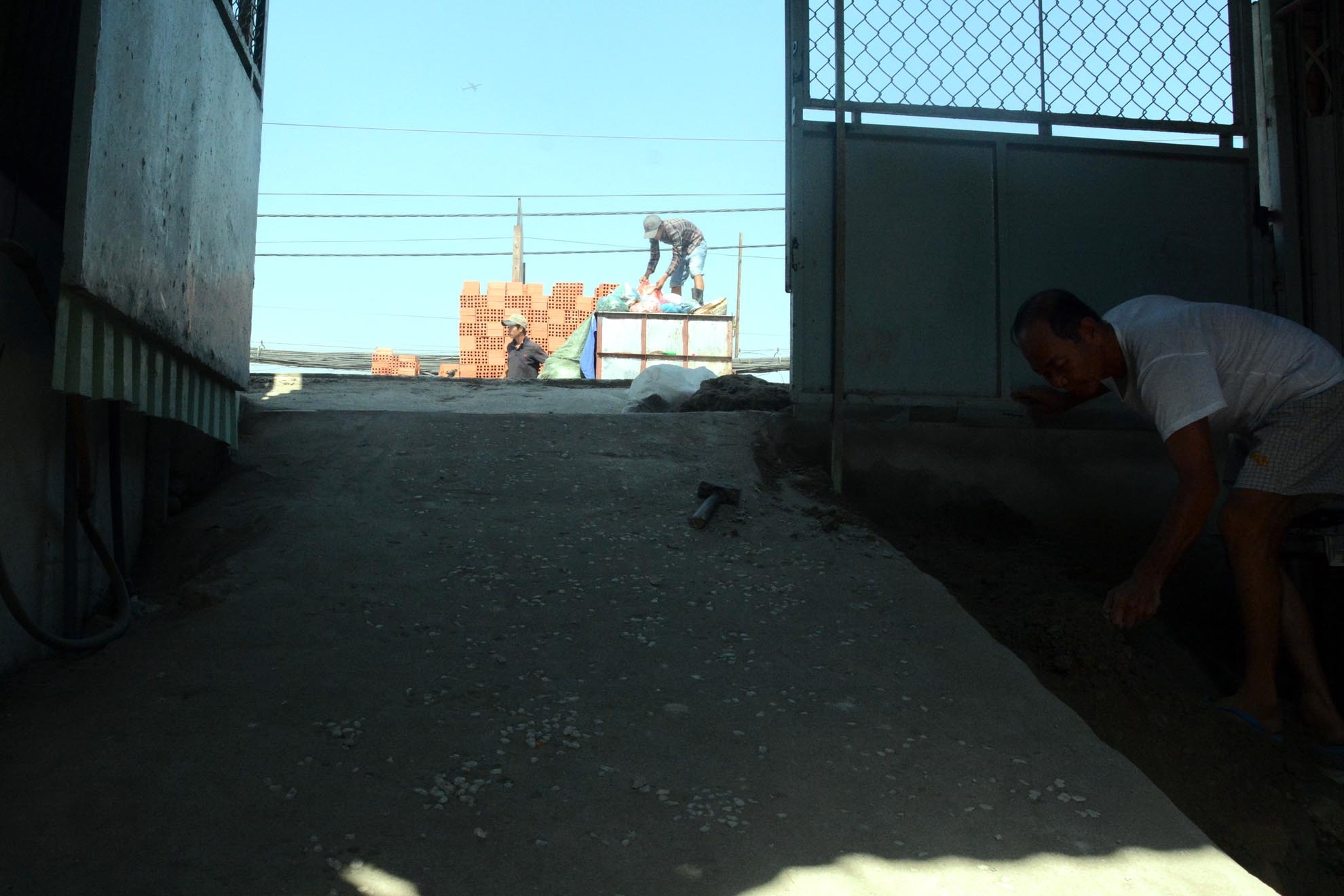 | Mấy ngày gần đây, xe tải chở đất đá, xà bần tấp nập về đây để phục vụ nâng nền, sửa chữa nhà cửa. |