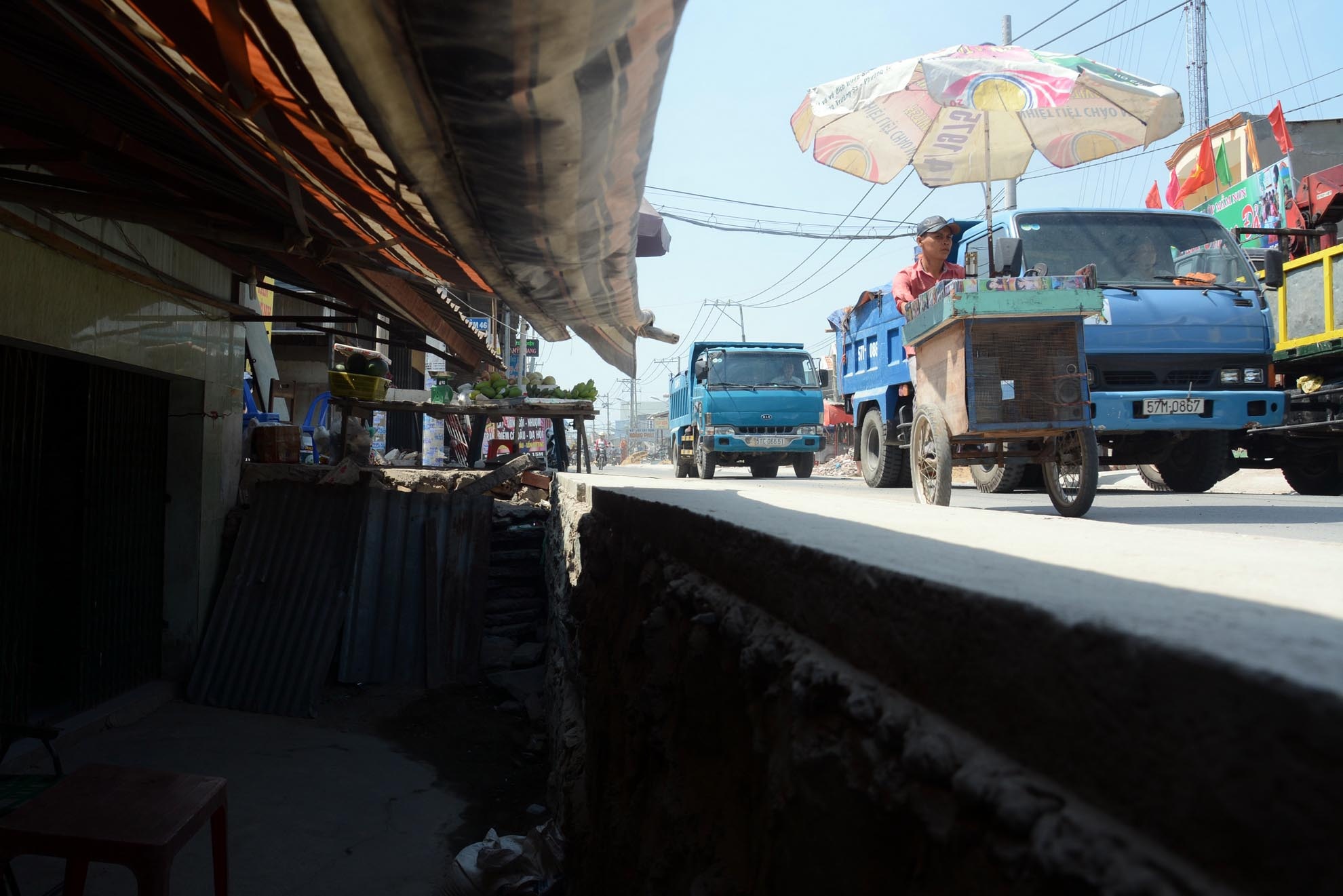 Cảnh sống chung với những chiếc hầm trước nhà của người dân hai bên đường Tam Bình. Họ mong muốn khi sửa nhà sẽ được chính quyền tạo điều kiện cấp phép xây dựng.