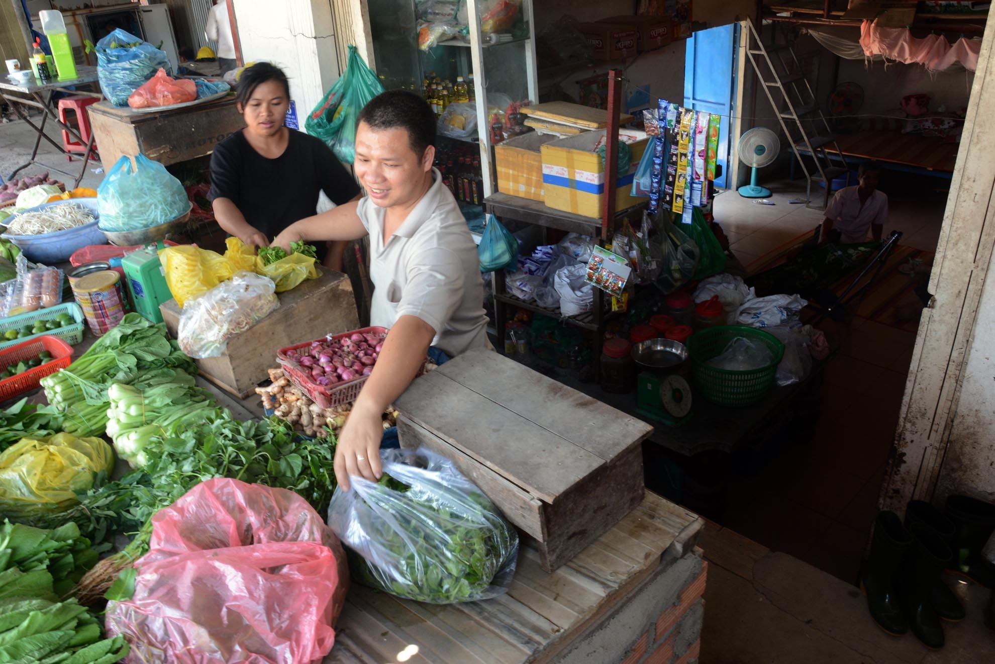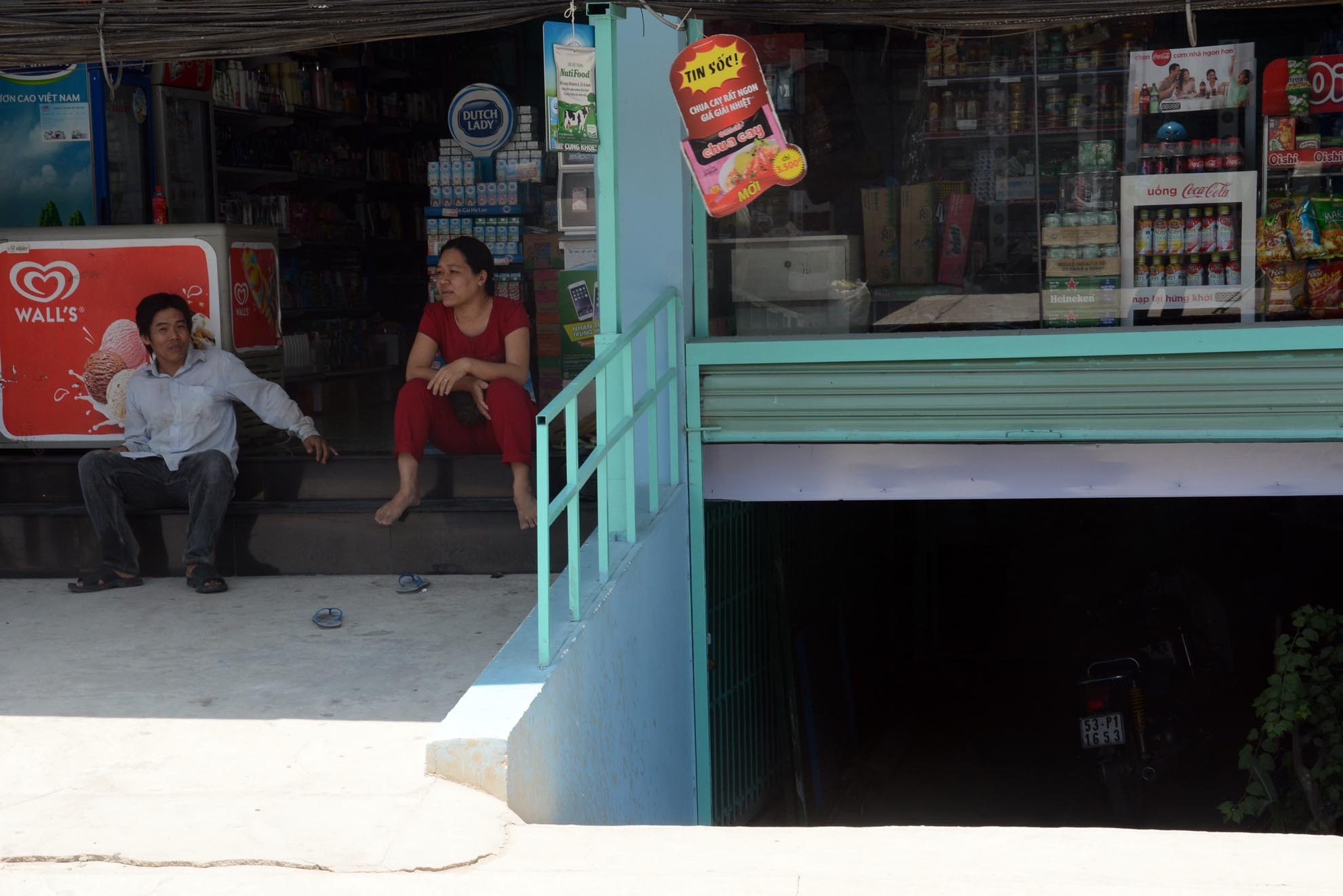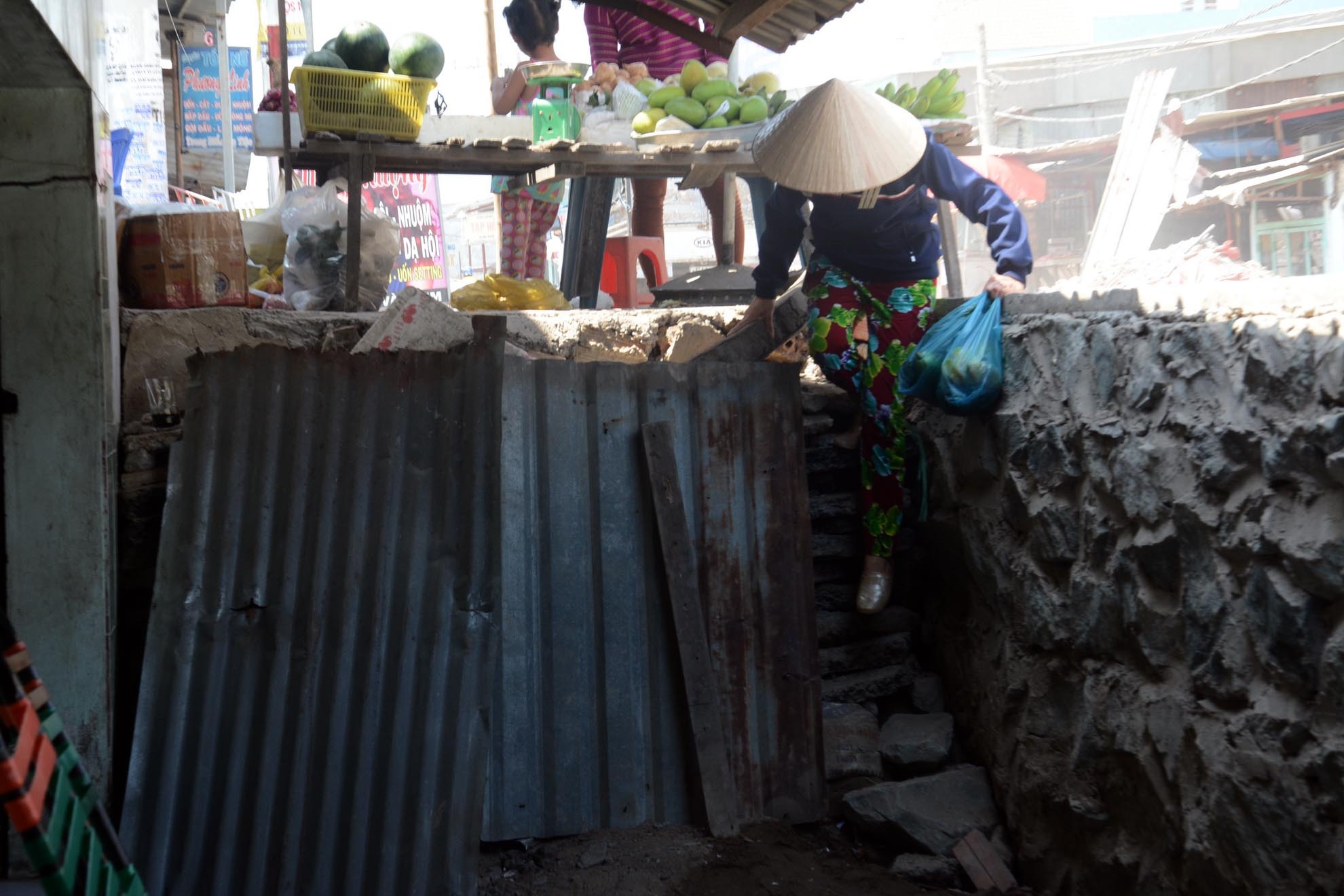 | Các hộ dân khác vừa kinh doanh buôn bán vừa ở trong những "căn hầm". |