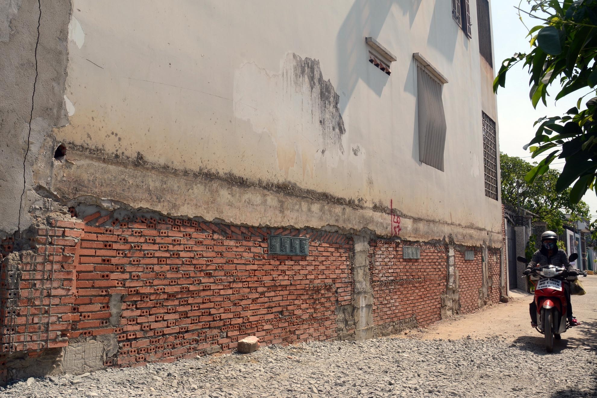 | Hình ảnh một ngôi nhà 3 tầng khang trang vừa được chủ nhân nâng cao hơn 1 m để ngang với đường mới. |