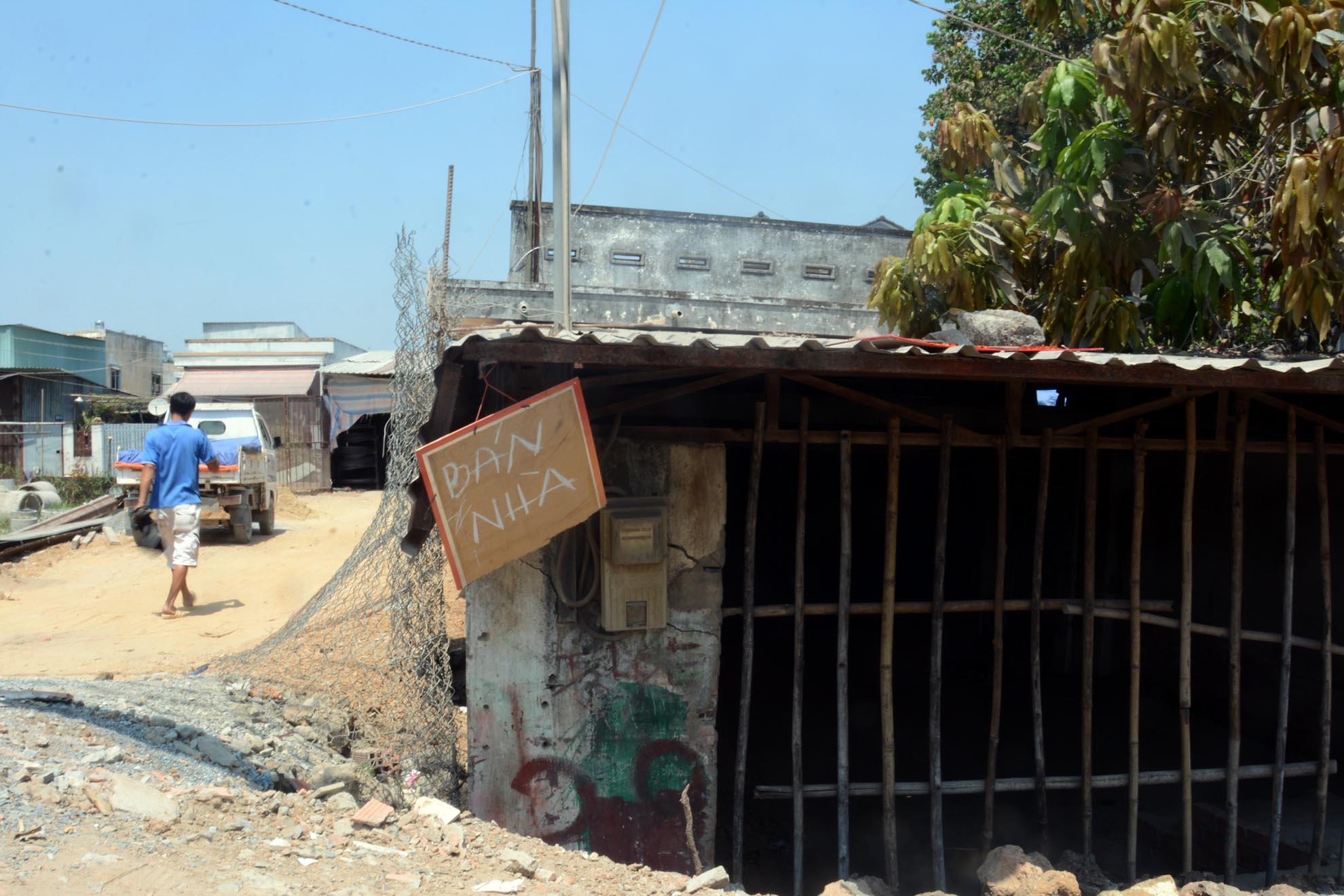 | Nhiều hộ dân treo bảng rao bán nhà khi họ không có tiền để sửa chữa, nâng nền. |